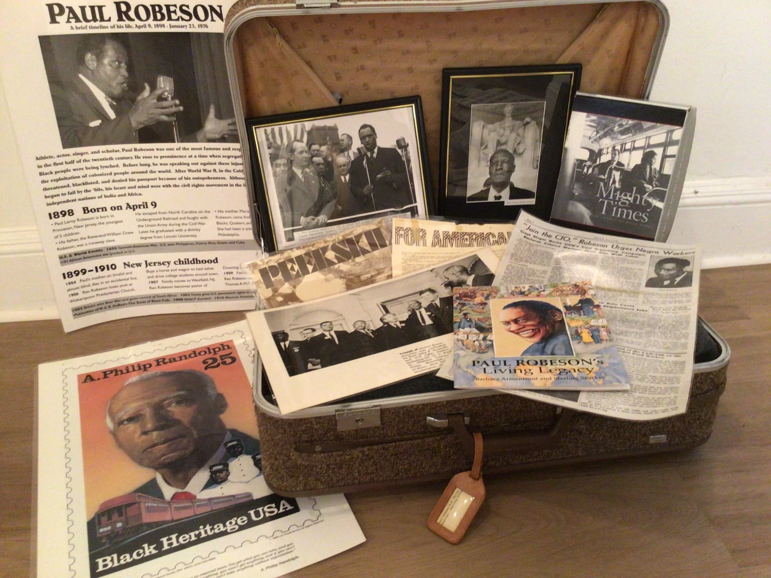 The suitcase, for grades 4-12, contain historical artifacts from the collection of the Museum and reproductions. They are provided for exhibit in display cases and use in classroom projects. Labels accompany objects. Suggested learning exercises are included. To borrow a suitcase and for more information, see suitcase